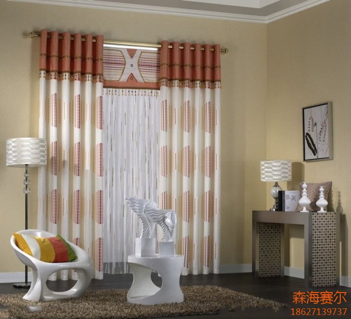 应当考虑居室的整体效果。就一般而言,薄型织物如薄棉布、尼龙绸、薄罗纱、网眼布等制作的窗帘,不仅能透过一定程度的自然光线,同时又可使人在白天的室内有一种隐秘感和安全感。况且,由于这类织物具有质地柔软、轻薄等特点,因此悬挂于窗户之上效果较佳。以米白色为主要颜色的卧室窗帘,下围的窗帘花边显得特别淑女,窗帘中间搭配红色、紫色、绿色等几种颜色,使窗帘看上去更加时尚大方,个性十足。这种样式的卧室窗帘用作儿童房或是年轻少女的房间的,都特别合适,简约、时尚、可爱、俏皮。